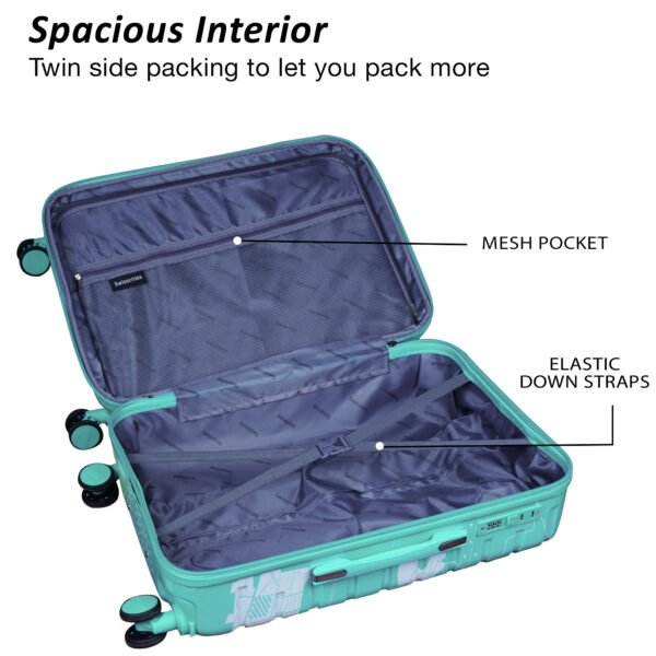 • 360-Degree Spinner Wheels: Glide effortlessly in any direction, ensuring smooth and quiet mobility.